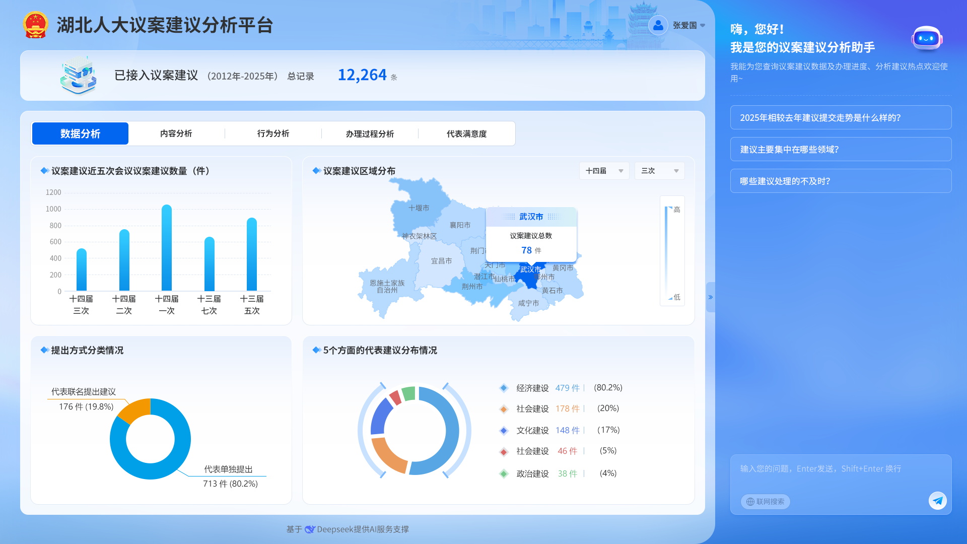 本次大会,议案建议系统深度应用了AI 大模型技术,在议案建议交办、分办时,基于历史数据和部门职责,智能预排主办和分办部门,全面提升议案建议办理效率与质效。